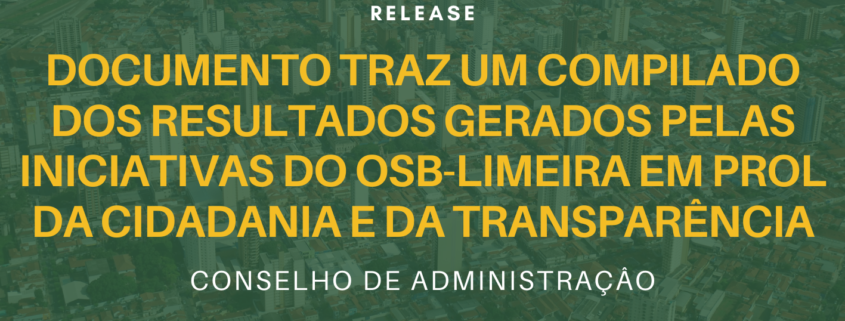 O Observatório Social do Brasil – Limeira lançou no dia 5 de julho o Ranking de Transparência e Governança Pública de Limeira e Região, que abrange 10 municípios do interior paulista. O trabalho, que utilizou metodologia da Transparência Internacional – Brasil, tem como objetivo oferecer um instrumento adicional para que a sociedade, a imprensa e os próprios órgãos de controle tenham acesso à informação e monitorem as ações do Poder Público na promoção da transparência e da participação social e no combate à corrupção. O ranking também tem como meta estimular o Poder Público a promover continuamente a transparência de suas ações e reconhecer o bom trabalho realizado por algumas prefeituras.