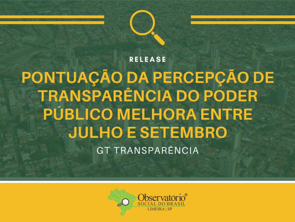 A Prefeitura e a Câmara Municipal de Limeira estão avançando no aprimoramento dos seus Portais da Transparência nos últimos meses, de acordo com a apuração periódica realizada pelos voluntários do Observatório Social do Brasil – Limeira, utilizando o Índice de Percepção da Transparência Municipal (IPT-M). Em setembro, o IPT-M geral da cidade alcançou 90,81 pontos, de 100 possíveis, um patamar considerado “ótimo”.