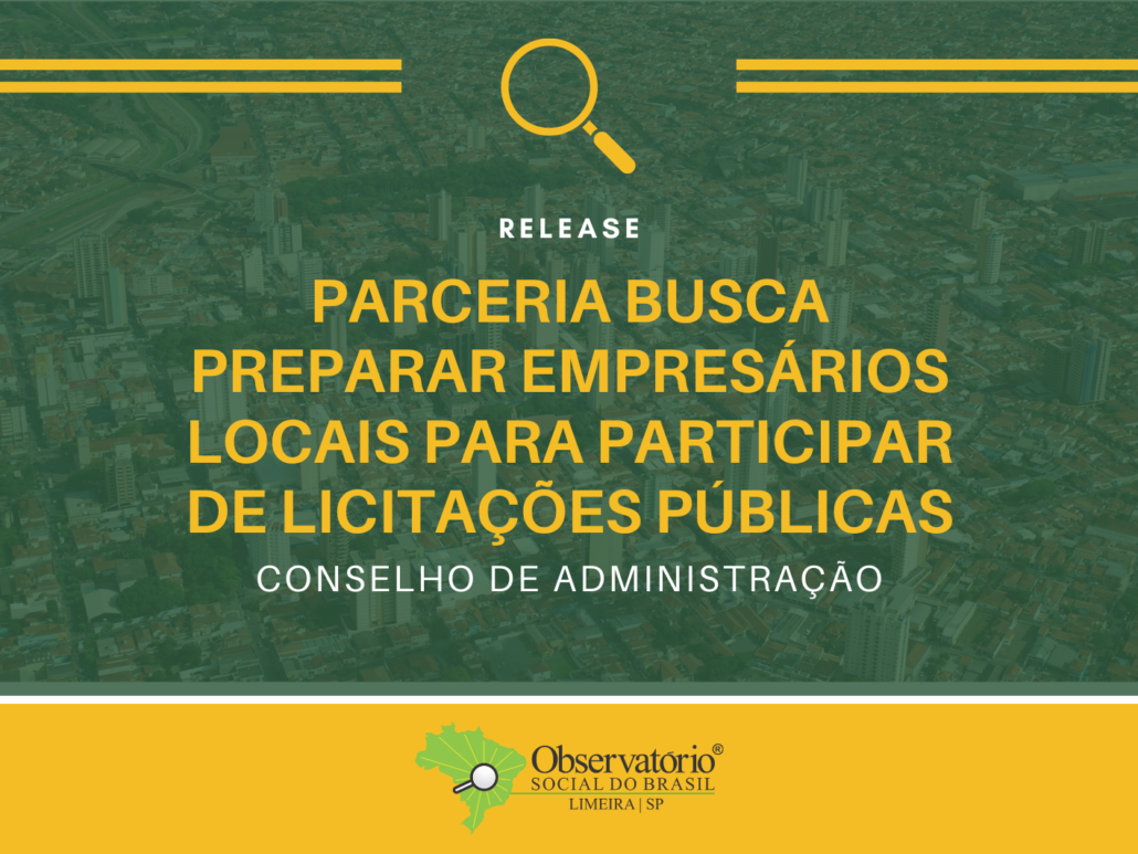 A Associação Comercial e Industrial de Limeira (ACIL) e o Observatório Social do Brasil – Limeira formaram uma parceria que tem como objetivo disponibilizar aos empreendedores limeirenses um ecossistema de serviços voltados às compras públicas possibilitando uma nova fonte de faturamento às empresas da cidade: o LICITACIL.